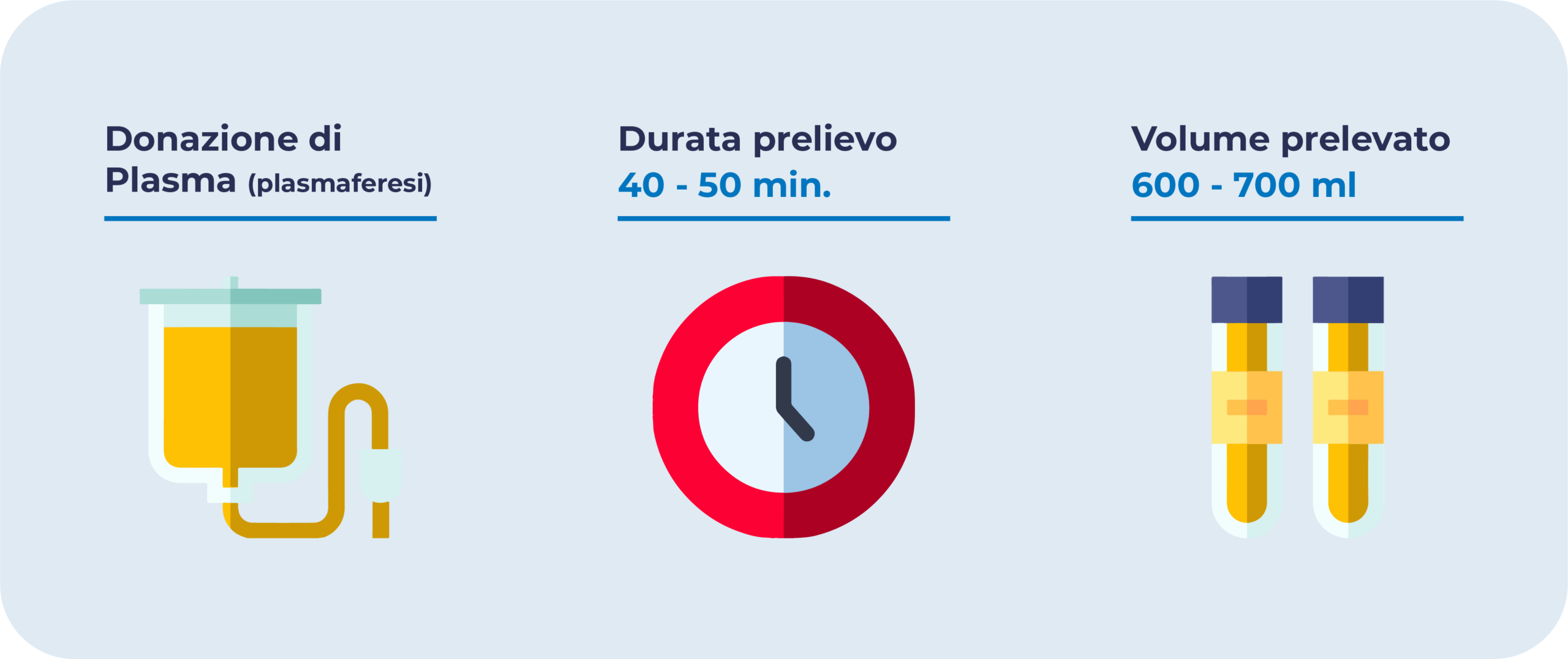 Nel caso della Plasmaferesi ciรฒ che viene raccolto รจ unโunitร di plasma che varia da 500 a 650 ml; i componenti restanti del sangue intero vengono โrestituitiโ al donatore in un processo continuo, attraverso un unico accesso venoso. ร auspicabile che ogni donatore effettui almeno una plasmaferesi allโanno; questo metodo รจ piรน lungo di una normale donazione ma meno invasiva.